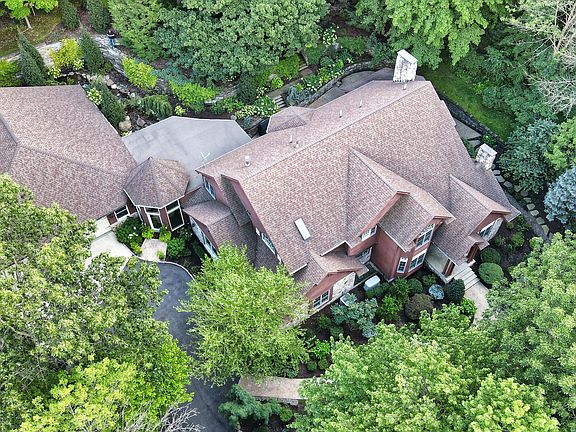 Stone & Redwood 4/5 BR home offers R & R w/ full sauna, whirpl, steam rm and lg exercise center. LR w/Frpl & DR feature rich millwork, stain glass archways, custom windows & chandeliers. New state of the art kitchen flows into 2 story FR w/ stone firpl, wd flrs, Ralph Lauren chandelier, cherry windows & doors w/ view of grounds & Waterfall. Newly designed master Bath & BR w/ frpl. 6 car heated gar