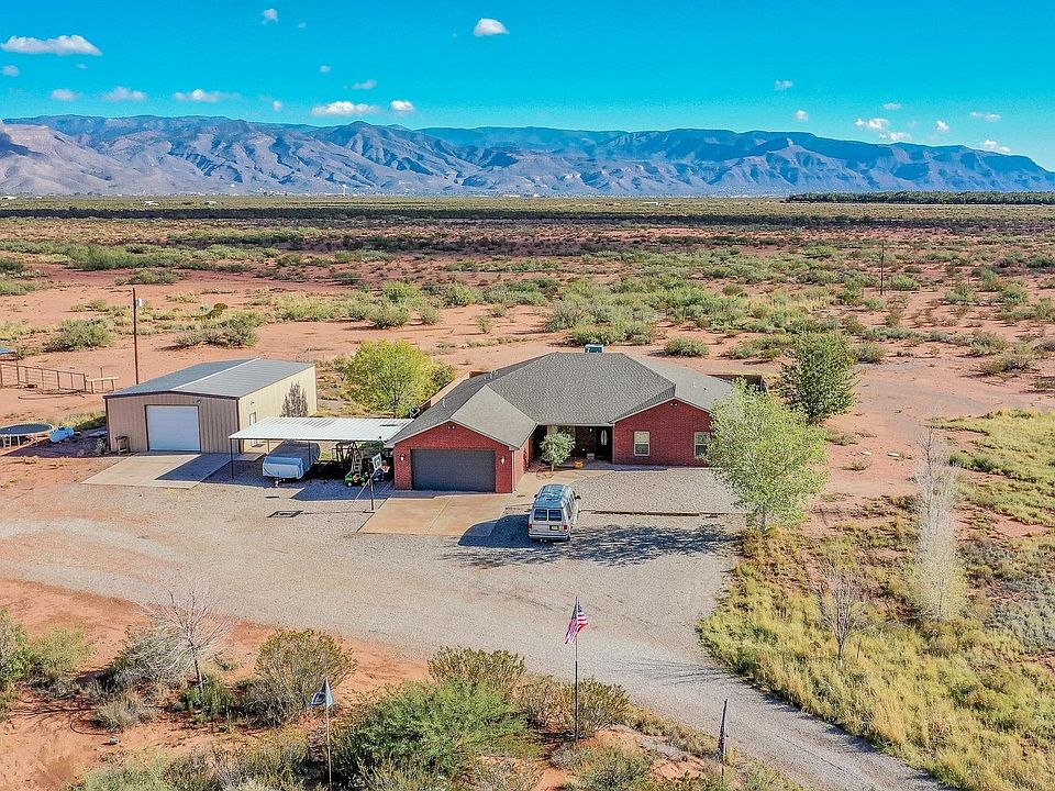 This 4-bedroom, 2.5-bath home offers over 2,500 square feet of living space on approximately 14 fenced acres with stunning mountain views and bordering BLM land. It includes a split floorplan, a spacious primary suite with multiple closets, a walk-in shower, and a claw-foot soaking tub. The open concept living area and sizable kitchen provide ample space for entertaining, while an additional living area could serve as a media room or office. The kitchen area has a built in workspace/desk as well as a spacious walk in pantry. There’s also a powder room for guests, a nice sized laundry room and a covered patio, a fenced backyard, 2 car attached garage, carport for 3 cars, and a 30 x 50 insulated shop/garage with electricity—ideal for hobbyists, extra vehicles, or equipment. Livestock pens/fencing in place too. Just minutes to Holloman Air Force base via La Luz gate. View the 3-D tour and call today to schedule a private showing.