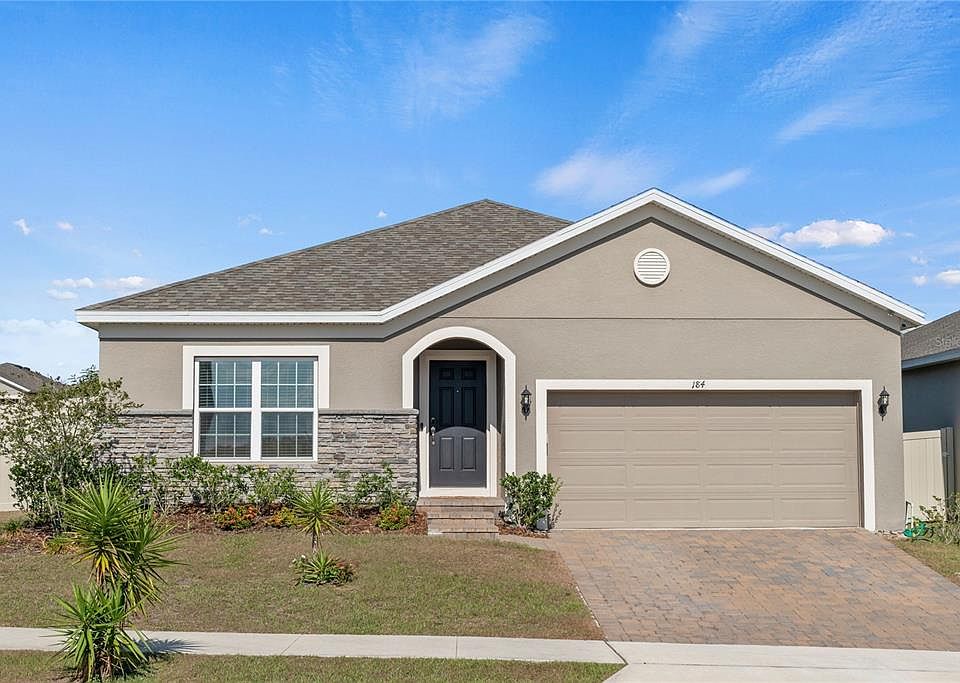 SELLER MOTIVATED! HUGE PRICE REDUCTION!! Highly elevated CORNER HOMESITE with stone on the front! Enter into this open floor plan with over 2100 sqft! 4 bedrooms plus an office space in the front of the home. Ideal working space for those that work from home. ALL APPLIANCES INCLUDED [washer, dryer, double door fridge, microwave] ! Enjoy entertaining family and guests with a huge QUARTZ kitchen island and large kitchen with 42 inch cabinets and crown molding. Corner home-site features vinly fence with double gate and large backyard. No neighbors to the right. Amenities include resort style pool, playground, and dock. Minutes away from highway and shopping. NO CDD!