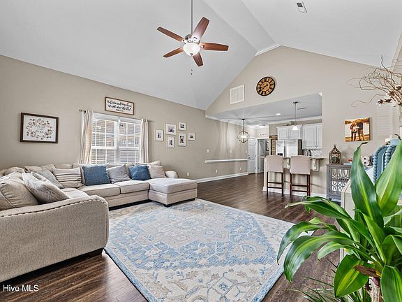 Welcome to your ideal single-story retreat near Bath, NC, featuring water views and a thoughtfully designed open floor plan. This charming home boasts three large bedrooms and two bathrooms, including a master suite with a custom walk-in closet and a spacious master bathroom for ultimate comfort. The heart of the home is its big kitchen, complete with elegant granite countertops and a raised bar, making it perfect for cooking and entertaining. Enjoy the high vaulted ceiling in the living room, complemented by stylish and durable LVP flooring throughout the main living areas and bathrooms. The black metal fenced backyard offers a safe haven for relaxation and outdoor fun. Located within the prestigious Bath school district, this home perfectly combines luxury and practicality. Schedule your showing today as this price range will not last long!!!