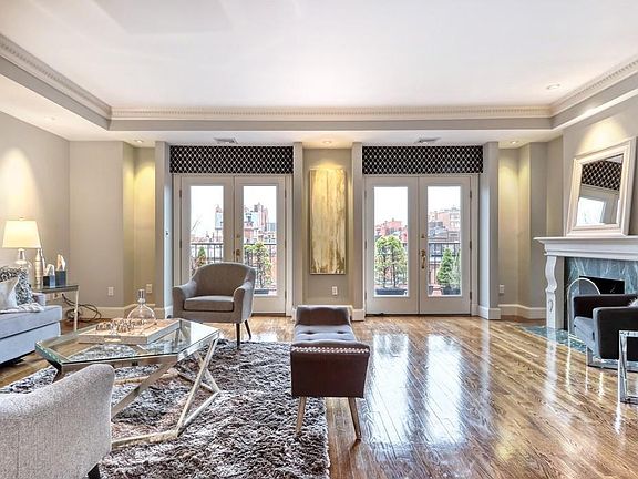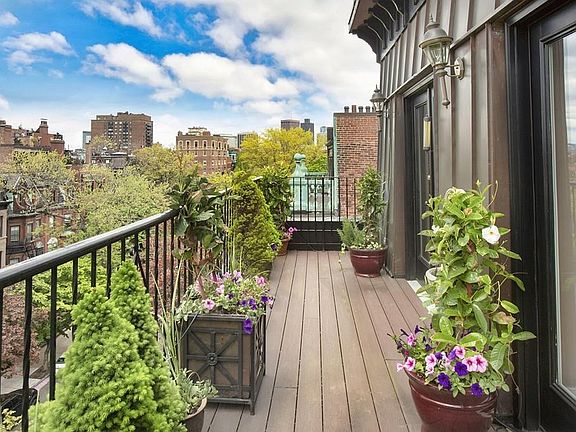 Stunning 3 Bedroom, 2.5 bath penthouse duplex of almost 2000 sq.ft of luxurious living featuring an additional 1000 +/- sq.ft. mutli-level roof deck with dramatic views of the Back Bay & Boston downtown skyline. The large marble, fireplace'd living room is flanked by 2 sets of French doors leading out to an additional 6'x24' terrace overlooking Marlborough St. Both outdoor spaces are fully landscaped & complete with an automated 3 zone irrigation system, dressed with accent lighting throughout. The open floor plan provides for fabulous entertainment with a separate marble wet bar & N'Finity Pro wine refrigerator. The grand dining room has a large skylight & lovely period sconces. Renovated, sky-lit kitchen is accented with an unusually large piece of inlaid granite floor matching the counters & back splash. Custom cabinetry, double Viking ovens, 5 burner Miele cooktop & Subzero refrigerator provide all the elements needed for that perfect kitchen. Elevator. One full parking space