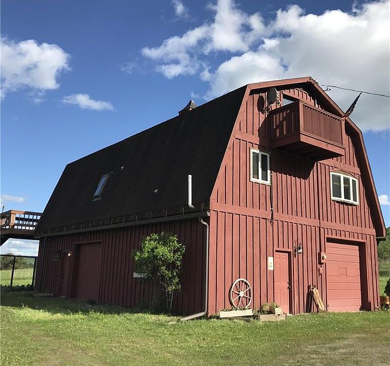 This unique barn style house has the feel of a cozy lodge! Ample living space, open floor plan, rustic pine interior are a few of the highlights of this property. Inside has a first floor bedroom, large walk-in pantry & nice large kitchen that opens in to the living room. Upstairs is an inviting loft that's spacious and overlooks the living room below. It's situated between two large bedrooms that each has its own veranda. The full height basement has a recreation room, storage, office area, workshop with room remaining for your vehicle or toys. Outside boasts a stocked pond that hasn't been fished in years, and a vast open field. If you want fun in the country that is affordable, this property is for you!