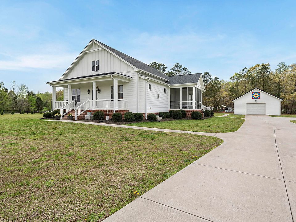Custom-built in 2018 by Terry Gilliam and designed by McMillan Design, this charming farmhouse cottage on 3.3 acres is special. Every detail of this house was lovingly and thoughtfully chosen by the sellers. Simple, peaceful, main-floor living was the goal, and it has been gloriously achieved. Natural light pours into the kitchen and family room and almost distracts you from the stunning grandeur of the ceilings and beams. Site-finished solid hardwood floors, recessed lighting, fully tiled showers, 42'' kitchen cabinets, and the mudroom entry are just a tiny sample of the thoughtful details in this home. Both the screened porch and the large front porch allow you to take advantage of the peaceful mornings and evenings. The detached, 1-car, functioning workshop is a thing of beauty and has been designed with the craftsman in mind. Zoned AR Agricultural Residential.
