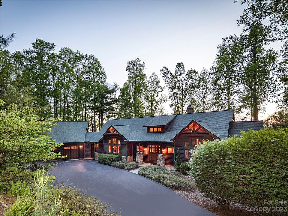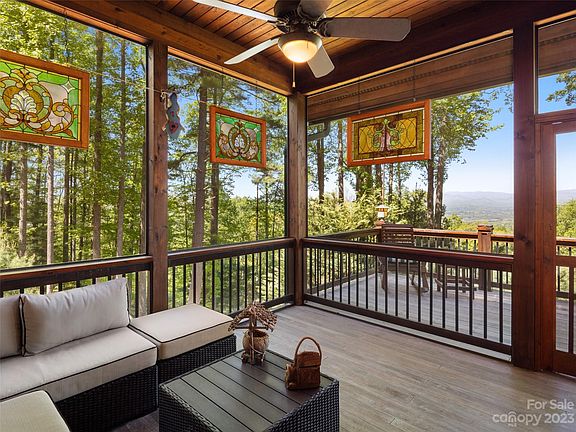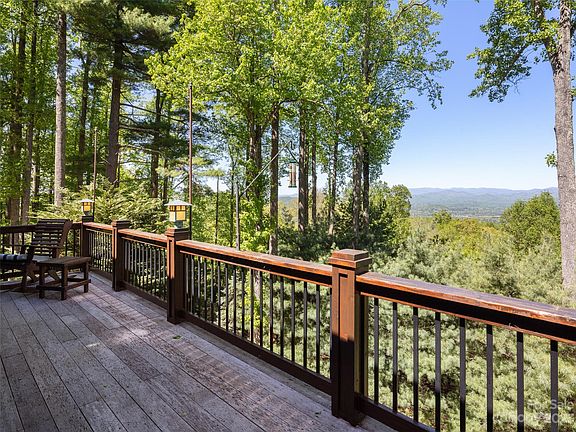 Incredible craftsmanship, long range views of Mount Pisgah and the surrounding Blue Ridge Mountains! Vaulted Great room with custom stone fireplace, hardwood floors, tongue and groove vaulted ceilings, wood posts, and exposed beams. Fabulous gourmet chef kitchen with center island and custom cabinetry, walk in pantry and large drop zone with office space. Luxurious primary suite with separate vanities, custom walk-in closet with full size laundry room. Lower level offers expansive family room with access to lower covered deck,2 guest bedrooms, craft/sewing room, bonus exercise room and tremendous storage. Private lot with easy level driveway entrance. This light-filled house boasts mountain views from virtually every room and the cozy screened in porch and open deck