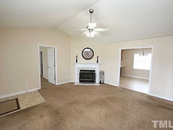 Lovely home in great location convenient to downtown Raleigh, Clayton & I40! Rocking chair front porch welcomes you into this spacious, 3 BR/2BA home. Corner wood-burning fireplace w/marble surround in living room w/catheral ceiling; Large eat-in kitchen w/pantry; Spacious Master Bedroom w/huge walk-in closet, Master bath with double vanity and linen closet; Amazing 2 tier deck with string lighting is perfect for entertaining! Storage building & fenced backyard; Move-in ready!