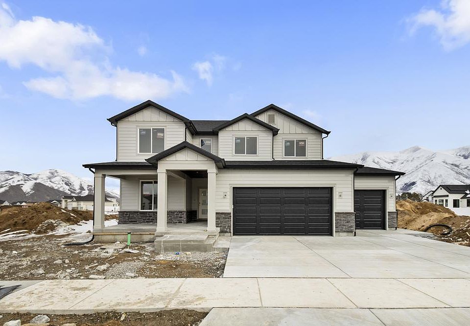 This home showcases a stylish and functional design with an open concept layout, flex room off entry, mudroom and half bath near garage, and a walk-in pantry within the kitchen. With 4 bedrooms, 2.5 baths, and a 2-car garage, this floor plan offers you and your family a space you'll love. Upstairs you'll discover a loft space, spacious owner's suite and bath, convenient upstairs laundry, bedrooms, and a bathroom. This home sits on a 0.20-acre lot. In the beautiful community of Sunrise Ranch in Mapleton, UT. This community is in a central location and is a perfect place to call home. Enjoy stunning mountains to the east and Utah Lake to the west. This community gives the feeling of rural seclusion while located only minutes from shopping and I-15.Exterior Features:Harriston Midnight Uintah Ledgestone Charcoal Sill and Trim Stone ColorRepose Gray SW7015 Stucco Base ColorBlack Soffit and FasciaInterior Features:Montego Paint Grade Repose Gray SW7015 CabinetsQuartz Bianco Tiza Countertops GE Stainless Steel Appliances - Oven, Microwave, DishwasherMohawk Sculptured Touch River Rocks Carpet w/8lb PaddingCali bamboo Calivinyl Pro Aged Hickory LVP Great Room FireplaceCheck out the selection photos in the gallery for a better picture of this home's features. Finished photos in gallery are representational images only. Call for more information on this home!