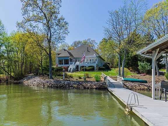 Location, location! This custom built home is on a gorgeous flat lot in one of the premier restricted subdivisions on Lake Gaston & boasts spectacular MAIN LAKE views! The home has many modern & luxury features with the warm feel of a comfortable lake retreat. The open floor plan is graced by soaring ceilings & a gas log pass-thru fireplace that can also be enjoyed in the spacious Master bedroom. A few features include hardwood floors, stainless appliances, granite countertops & custom cabinets. For entertaining, there's a huge bonus room over the garage where you'll find a nice pool table & foosball table. Enjoy the awe-inspiring sunrises each morning from the large screened porch & spend afternoons on the open deck featuring composite decking & a retractable awning. Double boathouse features composite decking & deep water. Crawl space has been encapsulated for maximum moisture control.