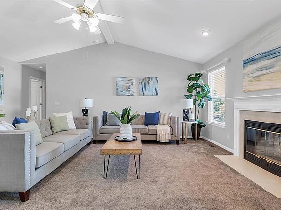 Incredible Ranch home with over 2500 sq ft of Living Space. 4 bedrooms, 3 full baths, 2 car garage with extra storage space. New roof, deck, siding, downspouts, 3 front windows, coach lights, hardwood floors in Kitchen & Laundry Room.  Vaulted interior. Finished Lower Level with living quarters including 4th bedroom, full bath, rec room, kitchen and walk-out. Nice fenced level backyard. Large deck & patio. Refrigerator, washer, dryer stay.  Fresh paint in most rooms.  Newer carpet in the lower level.  Main floor laundry.  Kitchen has oak cabinets, center island, built in microwave, newer faucet and garbage disposal.  Slider in breakfast room leads out to the new deck.  Nice landscaping package.  Greatroom is vaulted, woodburning fireplace and marble surround.