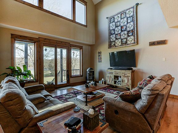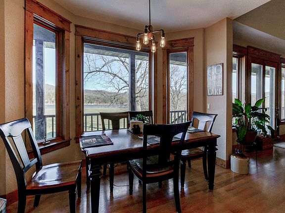 PANORAMIC-365 TABLE ROCK LAKE FRONT W/GORGEOUS LAKE & MOUNTAIN VIEW! GENTLE WALK TO THE WATER!! 7 GARAGE STALLS! WORKSHOP! INVISIBLE PET FENCE! And More-this unique custom home starts with an 8ft solid wood front door w/stained glass surrounds. In the Great room, 25 foot ceilings include windows to the top, Colorado style, to enjoy the amazing view! Other rooms have 9 foot ceilings and 8 foot doors, wood trims, beautiful built ins &fabulous fixtures. So spacious & light, the kitchen has extra tall, hickory cabinets with lots of drawers. Large, pretty Bay windows, &Room to seat 20 at the bar, breakfast nook, & formal dining room. Enormous patio, partially covered, for more entertaining options. An in-law suite including a kitchenette,& bunkroom/bonus room! NEW ROOF in 2018, Energy efficient