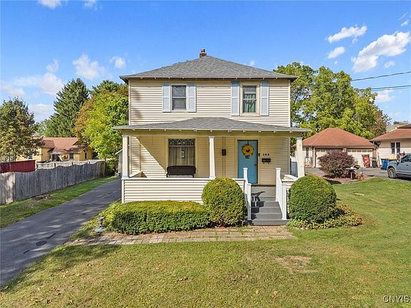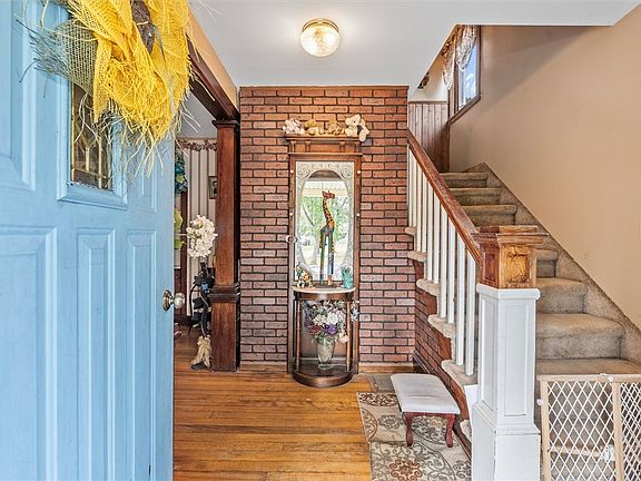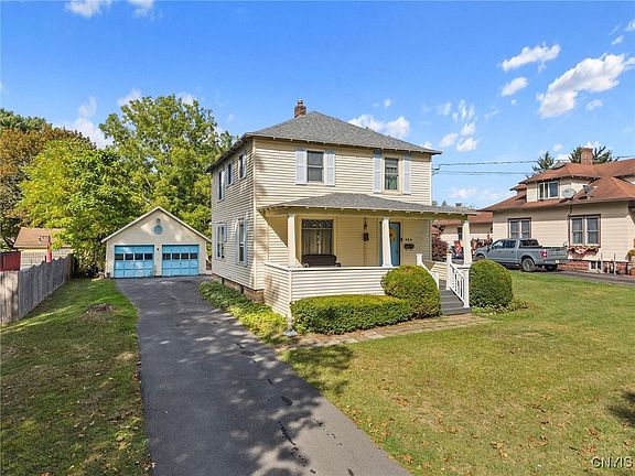 This 3 bedroom, 1.5 bathroom Sherrill two story is waiting for you to make it your own. The first floor includes laundry room, a living room plus a cozy den with pellet stove and original woodwork. The second floor bathroom has envious space with both soaking tub and standup shower. Outside has a wonderful open front porch, a back paver patio and two car garage with half of it almost finished with sliding glass doors, perfect space to make into your garage bar.