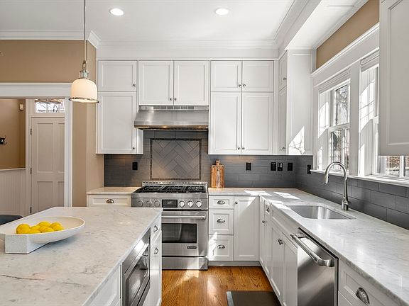 Rare gem! End-unit townhouse with unparalleled Charles River views throughout! Crafted by JW Construction, the residence boasts 3 bed/3.5 bath/2-car garage w/ high ceilings.The main level features a sunlit living area w/ a gas FP, elegant dining space, a gourmet kitchen equipped w/ marble island, SS appliances, 36" Jenn-Air range, vent hood, and a wine fridge—perfect for sophisticated entertaining. On the 2nd floor, enjoy breathtaking year-round river views from the main bed w/ California walk-in closet and en-suite bath featuring a tile-surrounded shower and double vanity. 2nd bedroom, full bath, and laundry complete the level. The 3rd bed on the top floor w/ full bath offers versatility as family rm, office or gym, leads to a private rooftop terrace w/ a built-in grill station, framed by mature trees—ideal for gatherings. More highlights are central vacuum, surround sound & ample storage. By the Bike path leading to the Esplanade, easy access to Cambridge/Pike/shops/restaurants.
