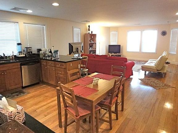 West Cambridge condo for rent. No fee to renter. New 2 bedroom, 2 full modern bathroom with hardwood floors and central AIR Conditioning. Open plan living space, with modern kitchen, off street covered parking, extra storage and outdoor space. Walk to shops, T and wonderful Raymond Park! Tenant pay utilities, 1st, last months rent and security deposit of 1 month due at lease signing.