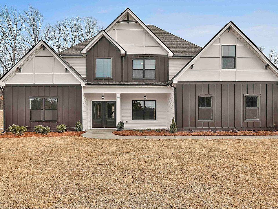 Murphy A - Five Bedroom with 3-1/2 Baths - The Kitchen is a chef's dream with tons of cabinets, quartz counters, double oven, below-counter microwave, five-burner gas cooktop, beautiful custom wood venthood and large walk-in pantry. Kitchen looks into family room with stone fireplace. Primary. Primary suite on main with large picture window on back wall looking out to wooded back yard. Bathroom with free-standing tub, walk-in shower with dual shower heads, vanity with quartz counters and rectangular sinks. Upstairs has an office, four bedrooms, and two bathrooms. Beautiful covered back porch plus uncovered patio. 3-car garage.