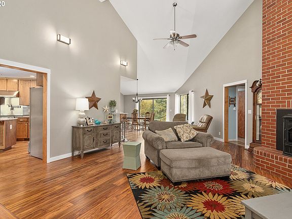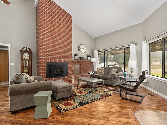 Stunning remodel of a one level ranch on 2.85 acres. Custom cabinets, quartz counter tops, kitchen island. Genuine Eucalyptus hardwood floors. Pellet stove insert in the fireplace,vaulted ceiling in the living room. Master with his and hers closets, private bath with walk in tiled shower. Large laundry room and office. 52x48 shop with lean-to, plumbed for a bathroom,separate office space and loft. 2 RV hookup, low maintenance fenced backyard, 7.5 miles from I-5.