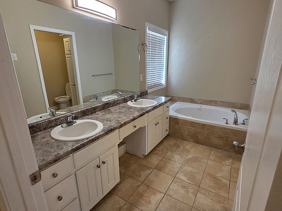 The primary suite is oversized with a large bathroom featuring dual vanities, soaking tub, and separate shower. Additional bedrooms are generously sized and versatile for guests, home office, or family use.