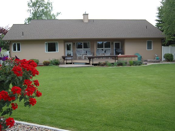 Very well kept 2122 sq.ft. living space with 3 bedrooms and two full baths. Tiled bathrooms and in the master suite heated floors, corian counter tops in both bathrooms. Hardwood floors throughout except in the two guest rooms. Gas forced air heating with Air Conditioning. Three car garage with in floor drain for the winter snow. Large backyard with. big redwood deck and hot tub, back yard is totally fenced in. Fruit trees and plenty of garden space, concrete mowing strips in all of the lawn area. Access to Buffalo Hills golf course.