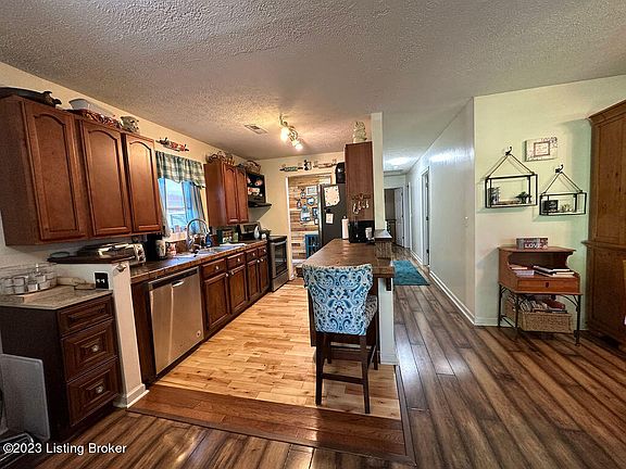 Welcome Home! This home has so many features starting with the park-like front yard. The front porch is covered, so you can enjoy your morning coffee and listen to the birds. You will notice the spacious dining area just off the kitchen as you enter the home. The accent barnwood wall continues to convey the park-like theme. There is also a lovely breakfast nook that could also be used as a work-from-home space. Then the large living room with lots of windows for natural light. Off the back of the house is another covered porch connecting to the deck, which puts you ready to jump into the above-ground pool! The backyard has a privacy fence and a large outbuilding or storage building available. Then to top it off, the home has three bedrooms and two bathrooms. The primary bedroom has an on-suite with a tub-shower combo. The other two rooms are spacious and can accommodate large furniture. The appliances are newer, the HVAC is more recent, and the appliances are just a few years old! Not to mention the oversized 2-car attached garage! Country living with city amenities. Call today to schedule your private showing.
