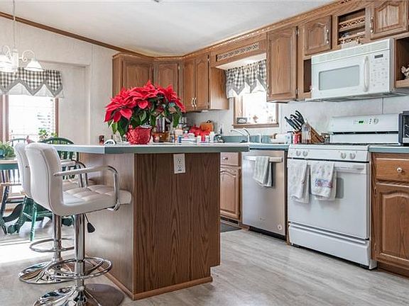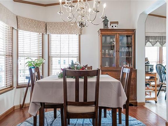 MAIN FLOOR LIVING! This openly designed, well lit ranch home offers easy and convenient access to all rooms! High vaulted ceilings, 4 NEW sky lights and brand NEW asphalt roof, oak crown molding and trim throughout! Gorgeous, large living room opens into beautiful dining room. Both rooms just off of the EAT IN kitchen. Multi pane windows, screens and lovely window treatments are all inclusive! Furnace just six years old! Master suite offers extra roomy walk in closet, full bath with jet spray tub, separate shower and Jack and Jill sinks. Two additional bedrooms also have walk in closets and share the second full bath. Flooring is a very high end composite. The washer/dryer combo stay with home. Garage allows for work area as extra space for more than just a car! Cement drive is bonus! Pull in get out and you have simple easy access to mud/laundry room and kitchen! Two sheds are situated in back yard. They are both included. Furnace and central air are just 8 years old!