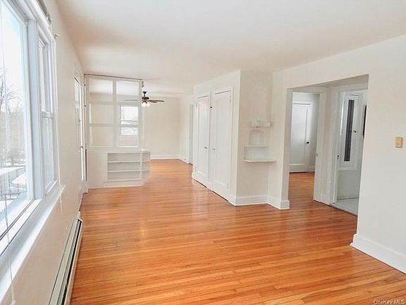 Stony Point, NY - Welcome to this light, bright, freshly painted, two bed, one bath home on a private road with mountain views. This charming home features hardwood floors throughout, a fully equipped kitchen, dining room, living room, both with picture window for an abundance of natural light. Beautiful property and charming porch for your outside enjoyment. Located near public transportation, shops and gorgeous parks. Washer/dryer hook up and plenty of storage in the two car tandem attached garage. Small pets allowed.