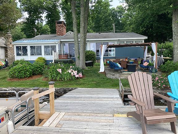 100 feet direct waterfront- full sunset western view - large dock- Amazing views! House is architect designed mid century modern - glass wall of windows in the Frank Lloyd Wright tradition face the beautiful lake.