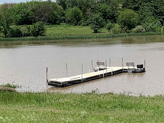 On 41.47 acres of timber, pasture and lake is a beautiful home w 2-beds (or 1 bed,1 office), 1-bathroom upstairs &2-bedrooms, 1-bathroom down. Open plan with beautiful hardwood floors, white kitchen cabinets, a large deck just off the kitchen that overlooks the lake and pasture. Basement walks out to a patio with equally great views. New dock is relaxing for fishing. The fish are many+large! Deer, turkey, eagles, owls, migratory ducks & pelicans-Wildlife haven. 26x22 shed YB 2015, hay income 4K (2/D/JP)