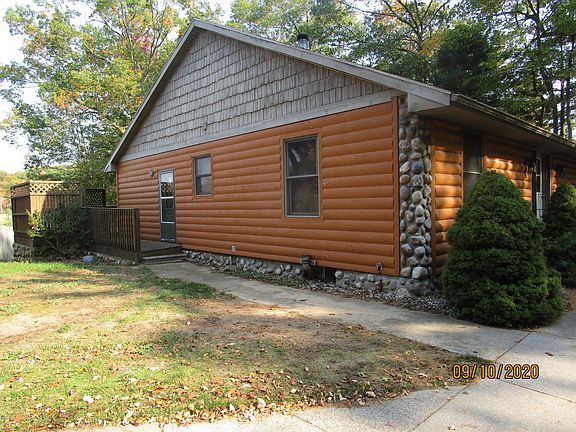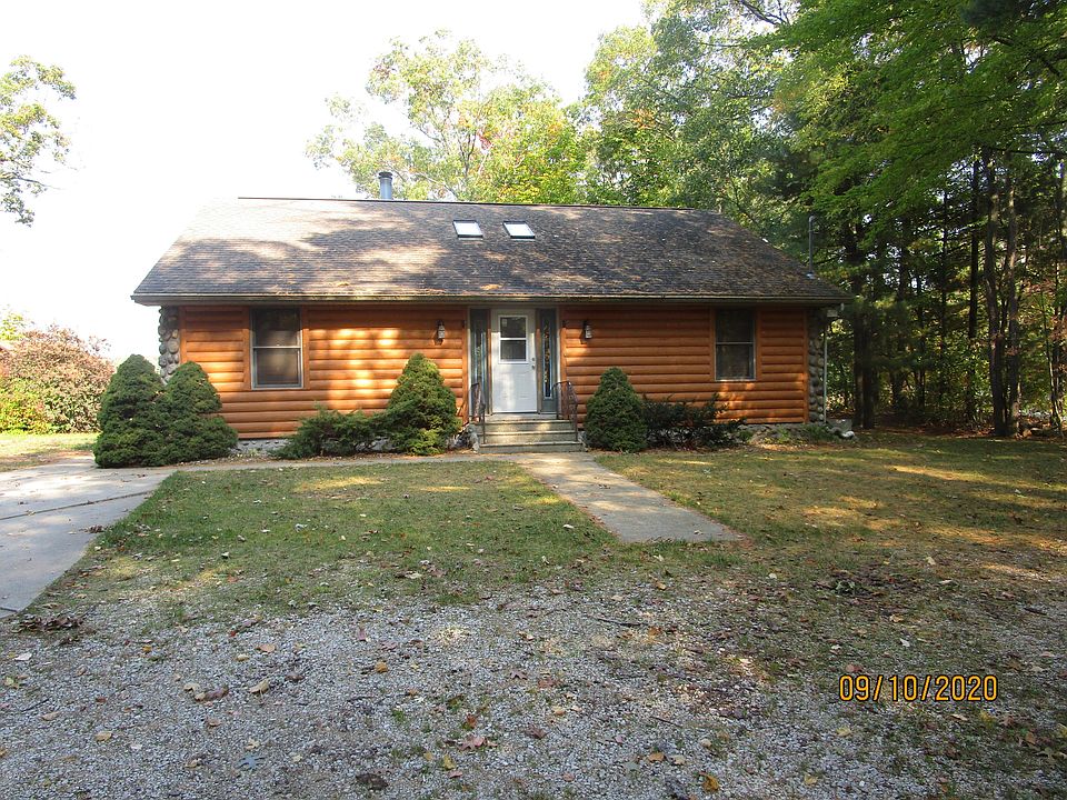 For Sale 3 bedroom 3 full bath Log Sided home in Reeths Puffer School System on Green Creek Frontage in Laketon Township. with a Walk out Lowe Level and 2 stall detached Garage
