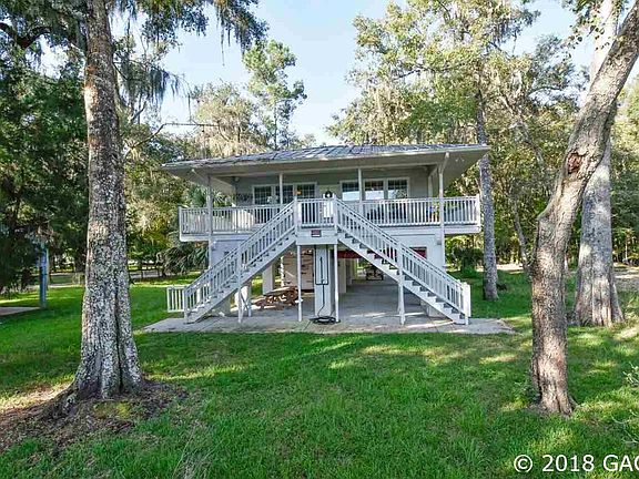 This fantastic high end home sits on the Suwannee River and was built to the nines! This is the perfect weekend retreat as its not far from Gainesville or a great home to live in permanently. It is cozy & comfortable with an open floor plan that is great for entertaining and every room has a view and also has an amazing wrap around porch. This home is amazing and a MUST SEE as you will not be disappointed. Beautiful double staircase leading to yard and gazebo and stairs to the dock leading to the river. This is an amazing home for entertaining and you have ample room for storing all the toys and boats. You get fantastic views from the wrap around porch or the gazebo and either is a great place to enjoy your morning cup of coffee or your evening glass of wine. It is easy to maintain as it has a metal roof and hardiboard siding. Call today for a private viewing before this one slips away.