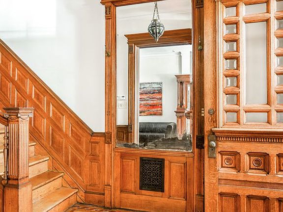 North Slope Beauty Uniquely laid out with three exposures instead of the common townhouse dual exposure, this is a lovely single-family house on St. Johns Place. Starting with the massive oak front door, special details abound, from parquet floors, to stained glass, and 100-year-old built in cabinetry. All with the modern amenities(central AC, master suite, renovated kitchen and bathrooms) that the 21st Century requires. The three story bay window is a beautiful feature on the outside and adds morning light on the inside. Almost every room has its original mantle, each with unique tile and wood surrounds. You will delight in the details. The parlor floor has a huge front parlor, a center parlor dining room with a side window which lets light into the often dark center parlor, and a cozy den in the rear parlor. The newly-renovated kitchen is in the extension, which is very large. The eat in kitchen features a six burner viking stove with a vented hood, stone countertops, a large stainless steel refrigerator and just the right amount of exposed brick. Both the den and kitchen lead onto the decked south-facing garden, resulting in an easy indoor-outdoor lifestyle. On the floor above the parlor, there is a oversized master suite. With an en-suite bathroom that includes a large walk in shower, double sink and window. The back of the house has a large bedroom with its own private deck and another bathroom. The third floor offers two more large bedrooms in the front and back of the house, with a large laundry room dividing the two. There is also another bathroom on this floor. Lastly, there is a large English basement providing a huge storage space, rec room possibilities, and the desirable arched construction. In sum, this home offers a rare combination old world details and move in condition. Available August 1st, no pets allowed, no smoking. Both deck photos are renderings, work will be complete prior to move in.