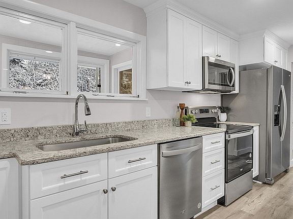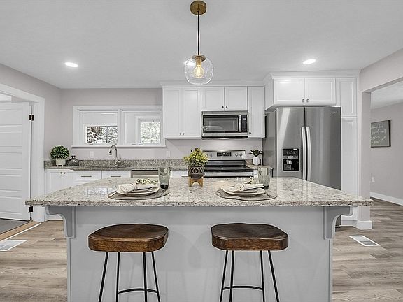 - Features: Flooring - Vinyl, Countertops - Stone/Granite/Solid, Kitchen Island, Cabinets - Upgraded, Exterior Access, Recessed Lighting, Remodeled, Stainless Steel Appliances, Lighting - Pendant, Lighting - Overhead