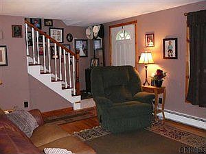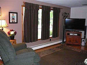 REDUCED! UPDATED AND CONVENIENT GUILDERLAND LOCATION-Attractive side hall colonial with many updates since 2006: Painted throughout with stylish colors; updated kitchen and appliances with ceramic tile flooring, updated baths w/ceramic tile flooring, hardwood floors throughout, new woodwork and 6 panel interior doors, Berber carpeting on second floor, new windows, exterior doors, overhead garage door, gutters, and hot water tank. New roof in 2010, full dry basement with new windows 2012. Deck off slider to large yard completely fenced. Separate fenced in area for dogs. Gas hot water heat. Low heating costs. Taxes approx. $3,900. Great area, great neighbors, family friendly, very convenient to everything. Broker's invited at 2%. - For more information and photos see: <a href=http://www.518forsalebyowner.com/homes/92174>www.518forsalebyowner.com