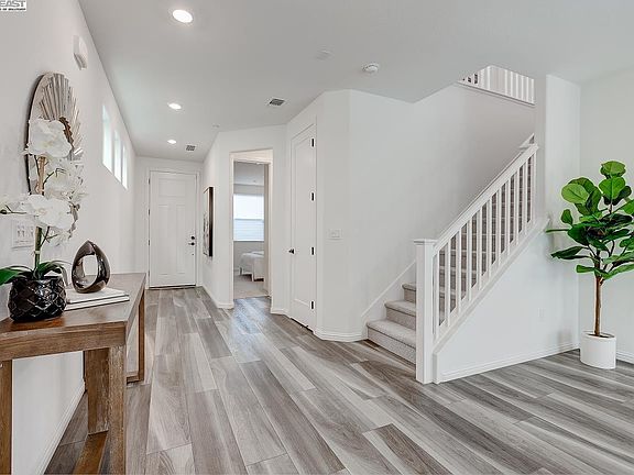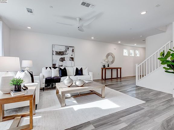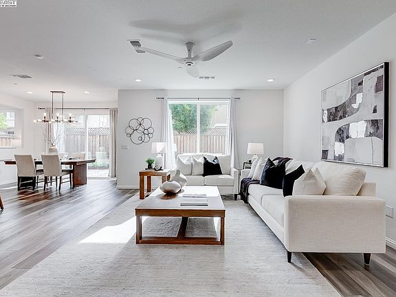 Discover 184 Scott Creek Way in the desirable and newer Terrene community. This is a pristine 5-bedroom, 3-bath Brentwood home offering 2,552 sq. ft. of stylish, upgraded living space. Built in 2020, this residence combines modern elegance and energy efficiency, equipped with solar panels and a water-softening system. The all-white kitchen boasts quartz countertops, a farm sink, KitchenAid appliances, and pendant lighting over the island, creating a bright, cheerful space. A main-level bedroom with a full bath provides flexibility, while upstairs offers a primary suite, three additional bedrooms, two baths, and a spacious retreat. Outdoors, enjoy a professionally landscaped backyard with pavers, river rock, turf, and shrubs—perfect for entertaining. Situated just steps from a large park with a play structure, this home offers both beauty and convenience. Move-in ready, this is Brentwood living at its finest!