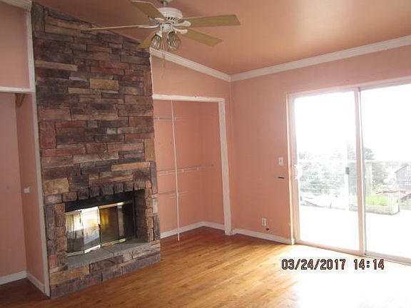 Looking for a remodel project with panoramic ocean views? Here it is! Open floor plan with dual facing fireplace between the living room and bedroom upstairs. Separate family room or bedroom and bathroom downstairs. Hardwood and tile flooring. All public utilities on site. Buyer to verify sq ft. 5% minimum earnest money deposit. Final acceptance contingent upon seller approval.