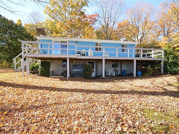 Three bedroom ranch home sitting on 3 acres with an amazing view and privacy. LEVEL 3 acres. Has covered seating area for entertaining. Home has new metal roof, new oil tank. Large front porch and huge back deck. An easy kitchen to prepare meals just for yourselves or for all of your guests. Three bedrooms to enjoy. Living room with sliding glass doors leading to deck and fireplace. Small dining room. Full bathroom on main floor. Full bath in basement, though not used recently. Large basement, could easily be finished to be game room or more bedrooms. Sit on the deck and look over the hills and forest. Leave your front door for a level walk to the majority of your 3 acres. Add on to this lovely cottage or build another home or two. Only minutes from Seven Springs, Hidden Valley, for hiking, biking and skiing. Cozy, solid, buy and move to the country. or live in the city and use as your country retreat. Either way, come see the home and stay for the privacy and view!!