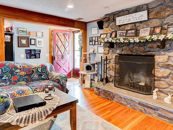 CUTE CAPE in Neighborly Nottingham sited on a level 2 acre lot with the North River just beyond the property boundary, offers the perfect blend of tranquility and convenience. This beautiful cape style home boasts 3 bedrooms, 1.5 baths, and over 2,200 finished sq. ft. with room to expand down below in the basement! Enjoy cozy evenings next to the warm and inviting stone fireplace heated by wood, or entertain guests in the spacious open concept living, dining, and L-shaped kitchen area on the first floor. Entertaining and gathering is made easy with this well designed floor plan. This home can easily accommodate any lifestyle. The large addition off the living room can serve as a bedroom, flex space, den, or whatever your heart desires. The opportunity exists for a 1st floor primary suite with another bedroom on the main level. The fully fenced-in yard, multiple decks, and brick patio provide ample space for outdoor entertaining and relaxation. Yes...There is a chicken coop for your chickens so you can create your homestead here. You also have the added convenience of a 1 car detached garage and a loop driveway for easy access to and from the property onto the Stage Rd. heading to nearby shopping and or dining in either Raymond or Epping, NH only a short drive away! Delayed showings start by appointment only Wed. 5/10, 5/11, 5/12 from 2-4pm. Limited private showings. Open House 5/13 1-4pm for BACKUP OFFERS ONLY. Property being sold "AS IS".