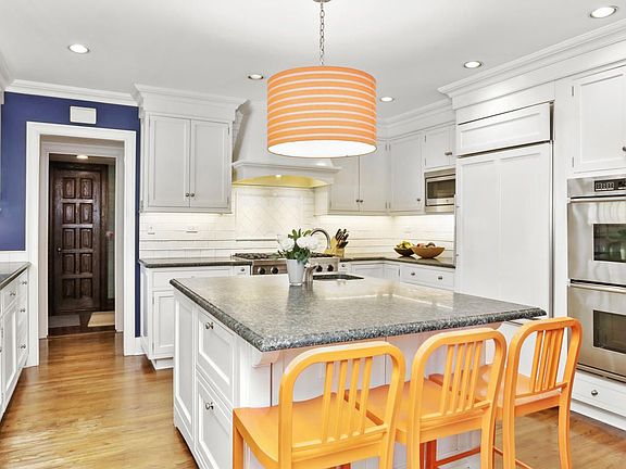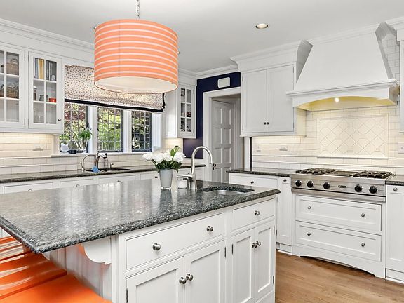 Sited on just under 2 acres of lush, level lawn in a coveted location, this 5 bedroom/4.2 bath home is the perfect sanctuary to enjoy summer. The back of the house opens onto a beautiful bluestone terrace overlooking an expansive, level lush backyard and newly planted vegetable gardens. Relish cooking in the gourmet kitchen with state-of-the-art stainless appliances and butler's pantry. Enjoy multiple stylishly decorated first floor gathering areas including an expansive dining room, living room with fireplace and a glass-enclosed sun room that opens onto the terrace. Upstairs, enjoy room for all with a light-filled master bedroom suite, 3 double and 1 single bedroom served by 3 full baths and an office. The ideal retreat to escape this summer. OWNER PAYS ALL UTILITIES.