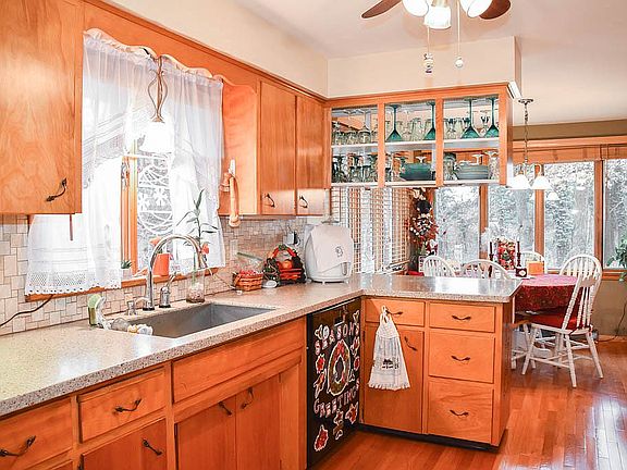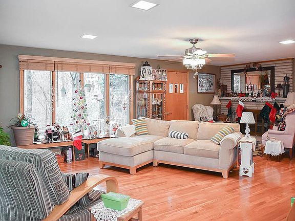 Wonderfully maintained 3 bedroom, 1 full 2 half bath all-brick ranch with a walkout lower level on 0.84 acres! Beautiful kitchen has new solid surface countertops, new tile backsplash, breakfast bar, pull outs in cabinets and comes fully applianced with countertop range, wall oven, dishwasher, microwave and refrigerator. Kitchen is open to the dinette with wood flooring. Large, sun-filled living room with a fireplace. New carpet in the family room with picture window. Custom fitted 2" wood plantation blinds on all windows! Convenient first floor laundry room with half bath. There are three bedrooms, all with wonderful closet space. The full bath has nice built-in storage, a tub and separate shower. Walk-up attic with 10" of insulation allows for easy and ample storage. Walkout lower level boasts a partially finished rec room, wood burner, half bath and workshop. 2-car side load garage with insulated ceiling. Extras include upgraded 200amp electrical service, new hardwood floors, new ceiling fans with lights, furnace with humidifier and air purifier and much more! Beautiful yard on 0.84 acres offers a porch, patio and 20x14 storage shed. Come see all this home has to offer!