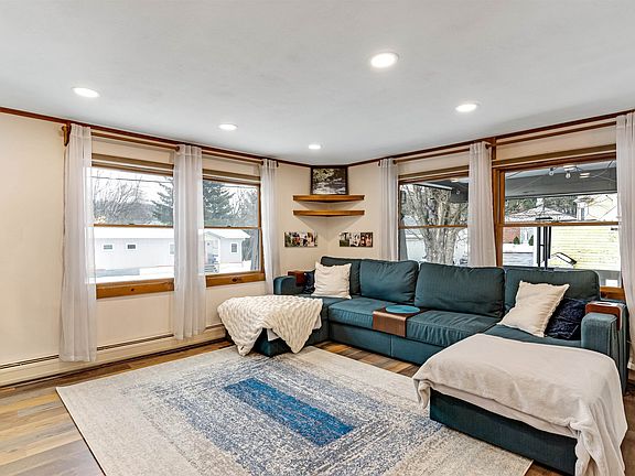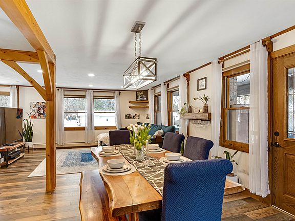 Welcome to your charming village oasis at 184 Terrace Hill Road, just steps from Hardwick's Main Street! This impeccably renovated home boasts stone paths, perennial gardens, and water features for a serene atmosphere, while the new standing seam roof, siding, and gutters make maintenance a breeze. Inside, an open floor plan is perfect for entertaining. The fully updated kitchen features custom woodwork, stainless appliances, and a large island with seating, while the dedicated dining area is highlighted by a fantastic light fixture. 3 heat sources, including a pellet stove, keep you cozy, and recessed lighting provides ambiance. Central vac makes clean-up simple! Down the hall, you’ll find three bedrooms with ample closet space, and the shared bath boasts tile work around the tub and shower stall. The lower level is a haven for relaxation, with an enormous family room featuring a gas fireplace and built-in shelving, as well as a half bath and laundry room. An attached two-car garage includes space for a workshop, with one bay currently serving as a finished music room. Outside, the covered porch is perfect for enjoying the surroundings with direct propane hookup for your grill. There’s room for outdoor gear storage below, or use the nearby powered shed. The driveway has been freshly paved and sealed. This modern, move-in ready gem has all the amenities you could desire, both inside and nearby in the heart of Hardwick. Don’t miss this opportunity for luxury living!
