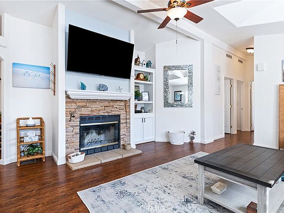 Welcome to this beautifully updated manufactured home in the sought-after Ranch Paso Senior Park, where you own the land! Spanning 1,525 square feet, this spacious residence features 3 bedrooms and 2 bathrooms, ideally situated at the back of the park, just across from one of the community's lovely parks. Step inside to discover a bright and airy atmosphere with vaulted ceilings and abundant natural light flowing through the numerous windows. The entire home is adorned with stylish laminate wood floors and plantation shutters. The inviting living room boasts a cozy gas fireplace, clerestory windows, and a built-in bookshelf, seamlessly flowing into the generous dining area and modern kitchen. The remodeled kitchen is a chef's delight, featuring stunning Calcutta North Quartz countertops, an attractive tile backsplash, and ample space for entertaining. The serene primary suite, located at the back of the home, offers a perfect retreat for relaxation, complete with a walk-in closet and an ensuite bathroom that showcases a spacious vanity with quartz countertops and a large walk-in shower. This home also includes an attached two-car garage for added convenience. Outside, enjoy the stamped concrete patio or explore the beautiful surroundings of the park. Rancho Paso Park offers a clubhouse, community pool, and a variety of activities to keep residents engaged. Plus, you'll appreciate the convenient location close to shopping, restaurants, and other essential amenities. Be sure to check out the Virtual Tour for additional details, including room dimensions!