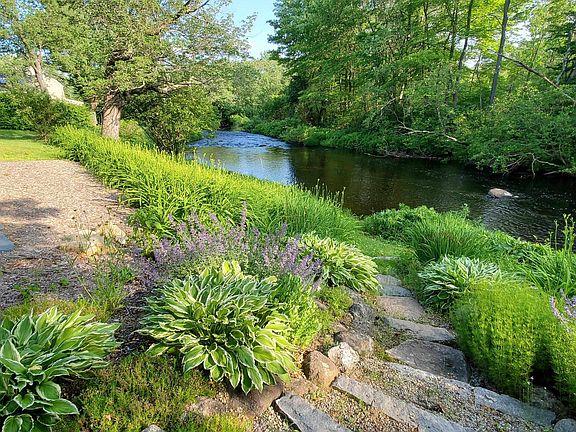 In 1910, the home, described at the time as “an old two-family house by the Nubanusit River”, was purchased by Marian and Edward MacDowell to be used as housing for the first male artists accepted to the world famous MacDowell Colony, the oldest artist colony in the United States. Today you will find a beautifully updated farmhouse along with a recently created Carriage House. The farmhouse features an open kitchen, a light filled dining room, a living room with wood-burning fireplace, 5 bedrooms each with bath, some with gas stove fireplaces, a reading room and a third floor getaway. The architect designed carriage house has great natural light, views of the river, its changing wildlife, open floor plan for living, dining and cooking plus 2 bedrooms, an office and 2 baths -- and features maple hardwood flooring, a kitchen island with a butcher block top and is wired for sound. Today, the property serves as the Little River B&B -- with the farmhouse being for the guests and the carriage house for the owners. Tomorrow, it can be home to an expanded family/friend compound or remain as a B&B. You will find established perennial gardens, a riverside deck for enjoying the wildlife and great spots for Adirondack chairs. Situated in the Monadnock Region which is rich in nature, art, music, dining and theatre.