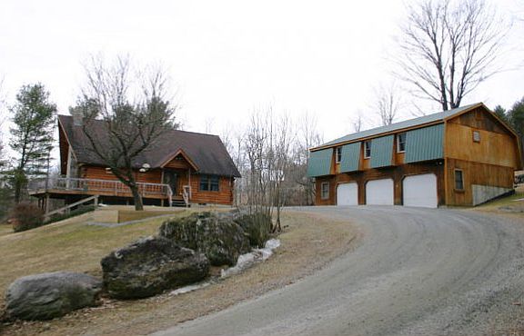 Eye Catching and just as comfortable. This 1990's cedar log home has many desirable features including 3 bedrooms, 2 baths, family room, project/playroom,open living/kitchen/dining with stone fireplace, wrap around deck and lots of windows. 3 bay garage with storage and 960 sqft of workshop all situated on 2+/- acres with stone walls and views of the river.