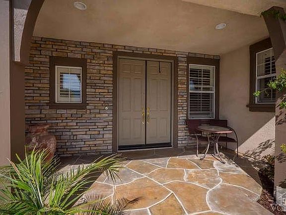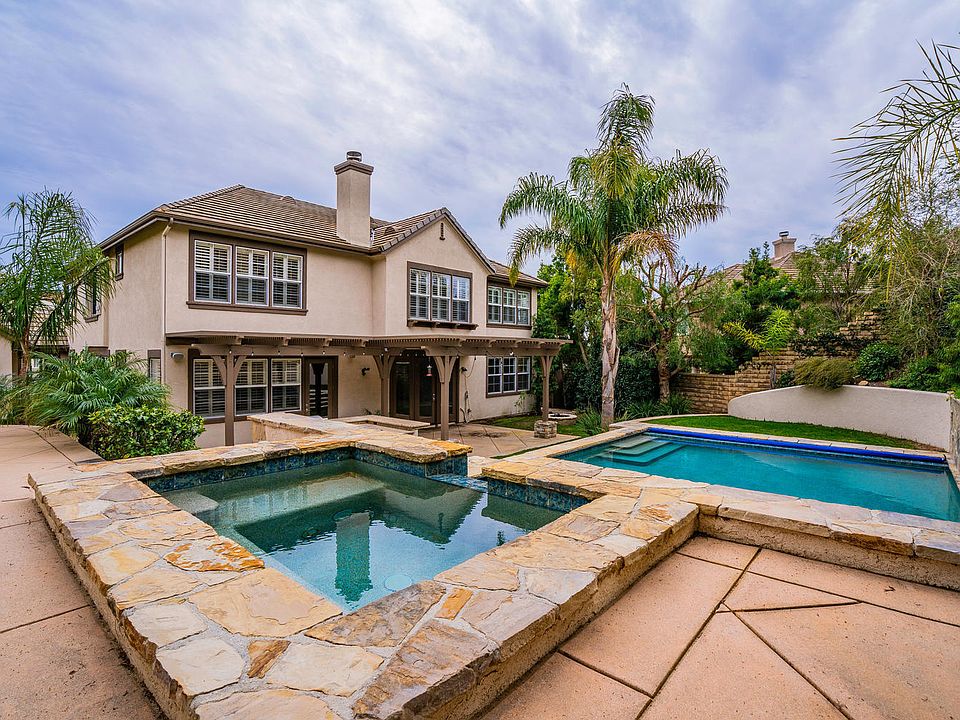 Magnificent Plan 3 Villa Serrano situated on private, 1/2 acre flag-lot backing open space. Upgraded home w/ dramatic foyer leading to the lovely formal living room & dining room, complete w/ built-in credenza, wine fridge, & wine rack. The gourmet kitchen boasts an oversized island, upgraded appliances, & granite countertops. Open to the kitchen, the spacious family room has custom built-ins and raised granite fireplace. The private master suite has a huge walk-in closet, shower and separate soaking tub, vanity, & dual sinks. Upstairs are three oversized guest bedrooms. One bedroom with full bath downstairs. All bedrooms have laminate wood flooring, ceiling fans, & plantation shutters. Indoor laundry room w/ sink. The resort-style rear yard features a magnificent pebble tec pool and spa, water slide, covered patio for outdoor living, firepit, & fabulous granite BBQ center. Various raised patios for additional entertaining. Expansive side yard with lawn & sport court. Main home is 5bed/3.5 bath. Semi-detached cottage with 3/4 bath and walk-in closet for guests, office, studio, etc. Updated/Remodeled