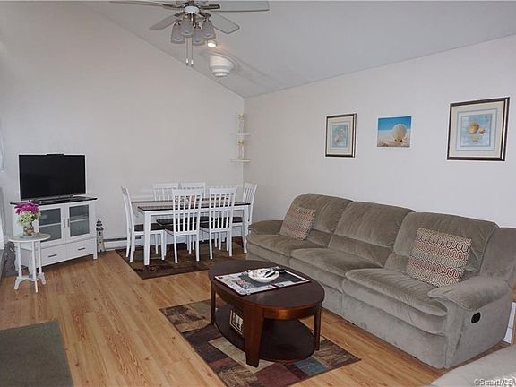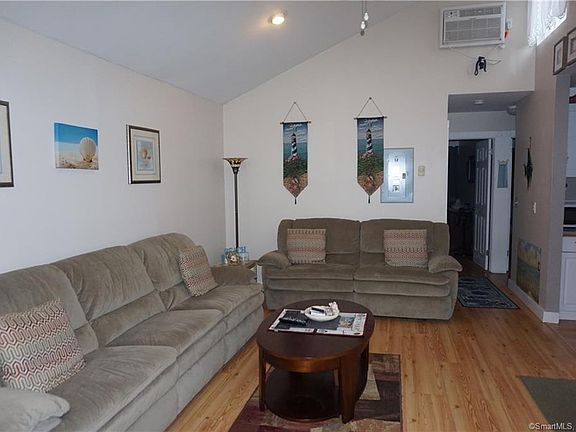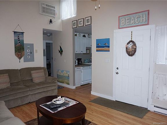 Super get-a-way option for weekends and summer! Minutes to downtown Niantic, boardwalk, beaches and state park! Standalone unit with open floorplan. Enjoy a vaulted ceiling in your great room, bright galley kitchen, and spacious bedroom. One step onto front deck and you are in to one floor living! Updated windows, bright interior, laminate flooring! Laundry center on premise, unassigned parking out front. Water and sewer included in your condo fee! Wood stove ceiling connection remains but is not functional- roof access covered - base removed - flooring difference noted under throw carpet. END unit, private front deck surrounded by shrubs. Located approximately one mile down from 95 access. Super convenient and affordable.!!