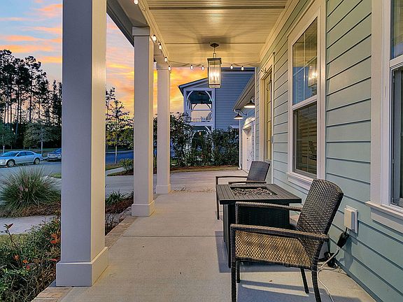 Single level living in the highly-desirable Brighton Park neighborhood in Nexton! This beautiful Homes by Dickerson 3 bedroom, 2 bath plan is situated on a uniquely private lot, overlooking a pond and woods from the front porch and serene woods in the backyard. Upon entry, you'll be immediately impressed by the 10' ceilings, 8' doors, cove crown moldings, and fresh paint throughout. Luxury Vinyl Plank extends throughout all the main living areas. The island kitchen features quartz countertops, soft closing white cabinetry, stainless steel appliances with a 5-burner gas range and included refrigerator, tile backsplash, custom pendant lighting, and double door pantry. A cozy gas fireplace with tile surround is the focal point of this open concept plan. A generously-sized eat-in kitchenprovides plenty of space for a large dining table. Step outside through the collapsable triple sliding glass doors to the screened-in porch and adjacent patio space overlooking a fenced-in backyard with private wooded views. Back inside, the Owner's Suite offers an ensuite bath with 12" x 24" tile floors, double sink quartz vanity, walk-in tile shower with built-in bench, and gorgeous custom-built California Closet. There is direct access to the laundry room from the Owner's Suite for added convenience. Two additional bedrooms are located off a private hallway and share a full bath. Directly in from the garage is a spacious mudroom with built-in desk/storage area. Don't miss out on this opportunity to own a beautiful move-in ready home in a prime location. Just a quick golf cart ride to multiple grocery stores, amazing local restaurants, and the popular "Pickle Bar," and a ten minute drive to historic downtown Summerville, you'll fall in love with all Nexton has to offer!