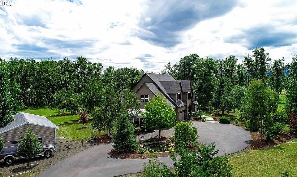 Beautiful custom home built 2006 w/high end features throughout. 2 fenced acres offer a park like setting w/privacy & seclusion. Covered patio w/retractable walls & awnings, orchard, koi pond & 35x23 shop! Stunning living rm w/20'ceiling, gas FP, picture windows & lots of natural light. Gourmet granite kitchen w/SS appl, hickory cabs, wine bar & fridge. Formal dining w/butler's pantry, private office, lg fam rm, theater rm & a luxurious Master suite. Circle drive, 3-car gar, extra prkg & storage