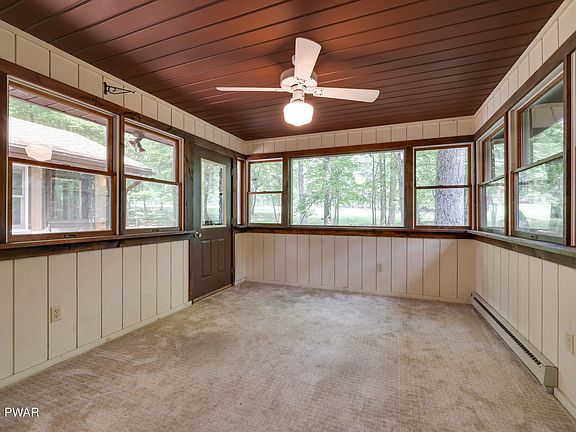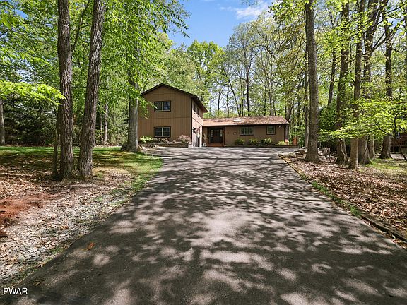 Great Floor Plan one floor layout w/ attached garage to make groceries unloading a breeze. Five rooms including a den and porch offer awe-inspiring views of the lush fairway & nature of the Poconos. Central air, 2 propane fireplaces and on demand hot Entertain or simply unwind in the open sunlit family & dining room. Boosting TWO primary ensuites with separate on-demand water heaters, your guests will be relaxed as you. Paved driveway with ample parking for family & guests. Dock Slips through community! Enjoy beach and pavilion. Only 2 hrs. form NYC and PHL. Just Perfect!!,