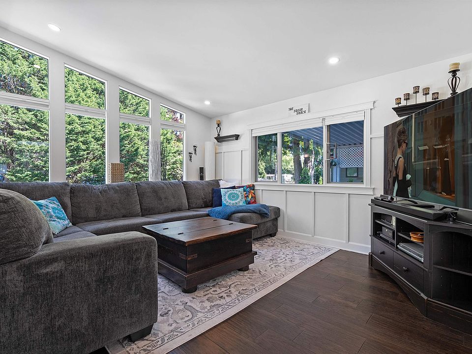 Welcome to the crown jewel of the complex! This beautifully upgraded 2-bedroom, 3-bathroom home boasts 1,676sq.ft and is the largest home available in the complex. Greeted by expansive south-facing windows that flood the space with natural light. This unique Open concept floor plan features new engineered hardwood flooring, stone countertops throughout, high end S/S appliances, new heat pump, fresh paint, functional blinds and so much more.Each spacious bedroom includes its own private en suite, offering ultimate comfort ,privacy and ample closet space. The home includes 4 parking stalls, two decks, 1 patio and impressive landscape. Close to shopping, parks, schools, and transit, this home combines convenience, and lifestyle in one perfect package. Why own a condo, when you can own a home