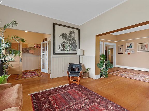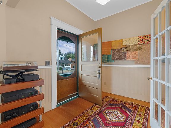 High ceilings, refurbished fir floors and abundant natural light welcome you into this gracious 1910 craftsman charmer. Main floor offers 3 bedrooms, one with Murphy bed, full bath with claw foot tub, plus utility room with half bath. All new appliances, induction cooktop. Upstairs 2 more bedrooms (one with partial Young's River view) and expansive skylit studio space with cork floors, plumbed for a bath. Downstairs bonus! 1,500+ Sq Ft, humidity controlled basement with exterior access to deer proof, pet safe, fully fenced yard. 220V in workshop area. Front porch overlooks gardens and neighborly stub street. Additional tax lot included to the south.