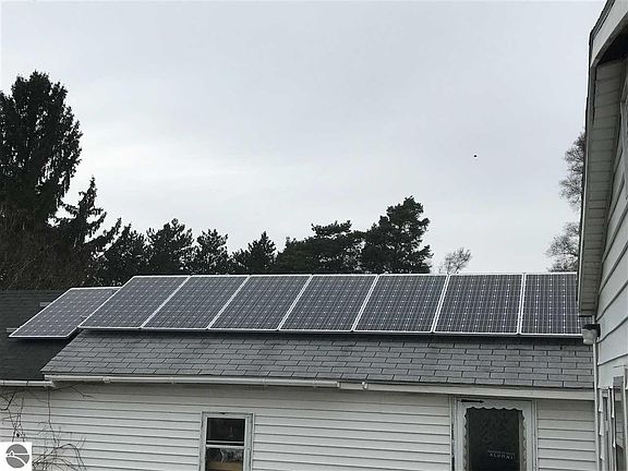 This nice 3 bedroom home is perfect starter home and is ready to move into and has a large lot that extends pass the fenced in area. This home has solar panels for energy savings producing enough to save money on electric billings. Home is close to M-20 and US27. Large bedroom has sliding glass door to go and sit on covered wood deck. One bedroom has bamboo flooring.