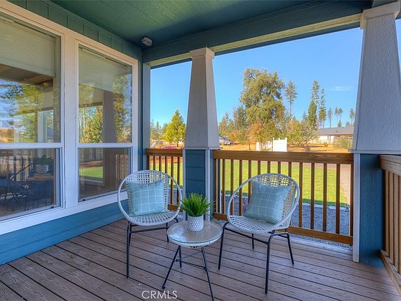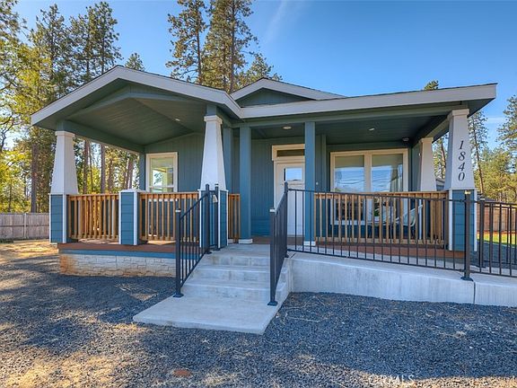 Here’s your next home, tucked away on a quiet lane on the desirable east side of the lively mountain town of Paradise. Situated on a level half-acre, this property offers plenty of room for parking, space to add a garage or shop, and fresh landscaping to enjoy. The inviting front covered porch, complete with a concrete ramp for easy access, welcomes you to a home designed with both comfort and style in mind. Large, oversized windows flood the space with natural light, highlighting the tall ceilings, crown molding, and a gas fireplace with a stunning stone surround. The kitchen is a dream, featuring solid surface countertops, a tiled backsplash, and a spacious pantry for all your storage needs. Throughout the home, electric smart window treatments add a modern touch, allowing you to program them to open or close with ease and convenience. The primary suite, located at the rear of the home, offers private access to a large deck—perfect for enjoying your morning coffee or evening relaxation. The en-suite bathroom includes a double-sink vanity and a generously sized walk-in shower. This modular home stands apart from the rest, boasting premium upgrades like a steeper roof pitch, pit-set foundation, and oversized windows—along with many other thoughtful details you have to see to appreciate. Come explore this unique property in a vibrant mountain community—your new beginning starts here!