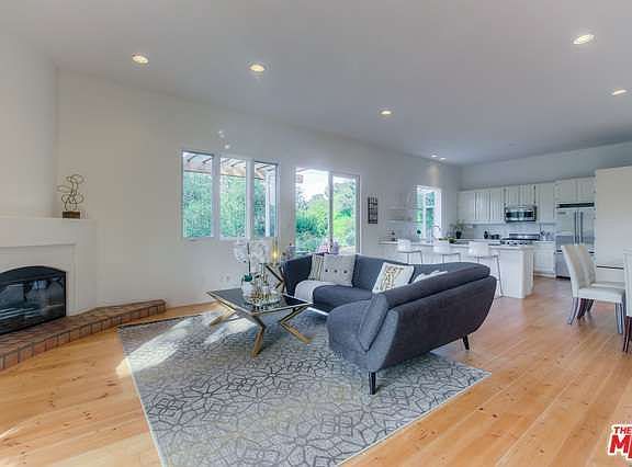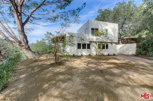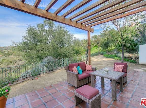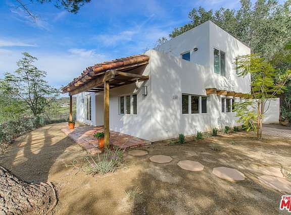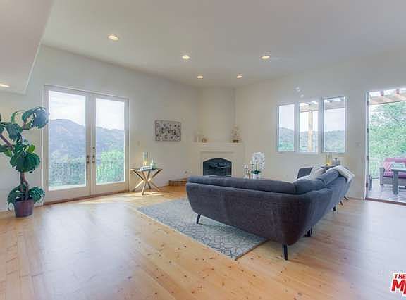 Set behind a gate at the end of the road, this beautiful three bedroom, two bath canyon home looks out to panoramic, cross-canyon views. Almost an acre of land provides room for entertaining and play. Spacious and light, the great room flows out to a patio and flat yard. Generous kitchen with Viking appliances has ample counter space and a breakfast bar. Upstairs, the serene master suite opens to its own private balcony and features a well-appointed bath and walk-in closet. Two additional bedrooms downstairs share a lovely, updated bathroom. An additional flat area on the upper part of the land features a magnificent oak tree next to an open area with many options. Large garden shed provides additional storage. Plenty of parking.